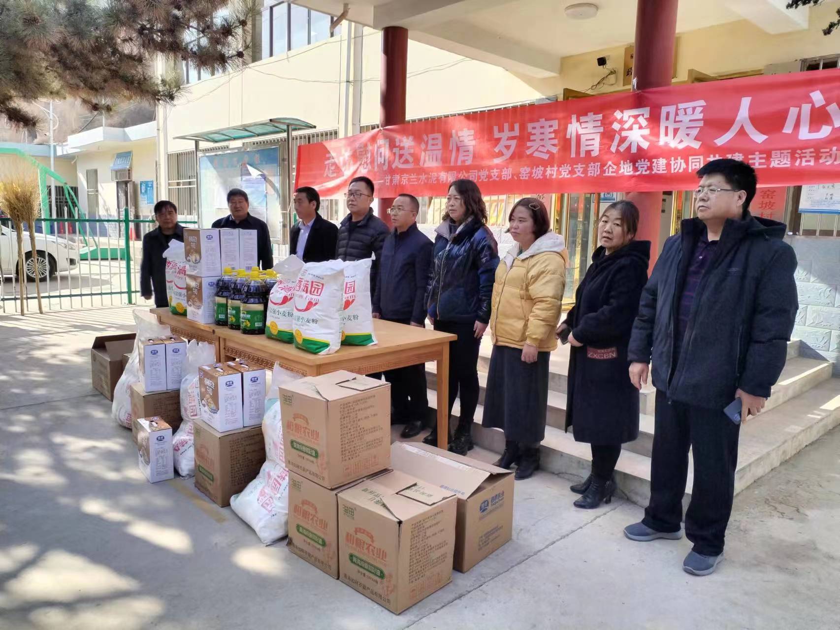 歲寒情更濃,牽掛暖人心。在春節(jié)來臨之際,甘肅京蘭水泥有限公司黨支部在企業(yè)所在地小康營鄉(xiāng)、新營鎮(zhèn)、高崖鎮(zhèn)開展了“送溫暖,獻(xiàn)愛心,企業(yè)在行動”村企聯(lián)建活動,主要對涉企鄉(xiāng)鎮(zhèn)的老年人、困難家庭及罹患重病人員進(jìn)行了慰問。此次活動累計慰問困難群眾122人(戶),發(fā)放面粉(10kg)122袋、食用油(5kg)122桶、純牛奶122箱、重病人員500元現(xiàn)金/人。